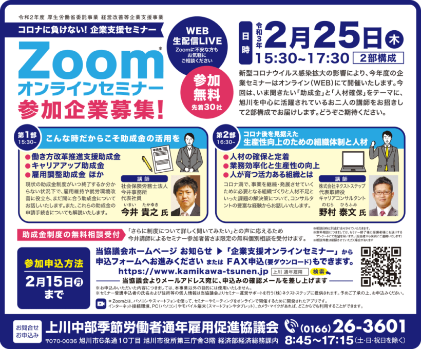 Zoomオンラインセミナー参加企業募集